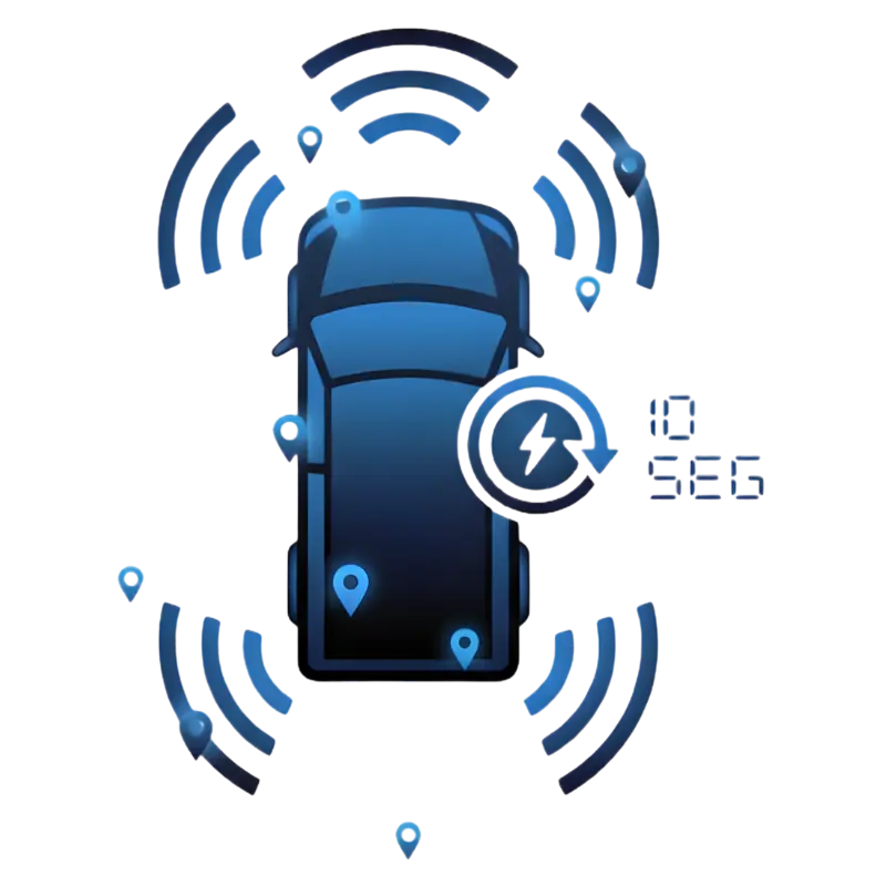 Rastreo en tiempo real, actualización de ubicación cada cada 10 segundos.